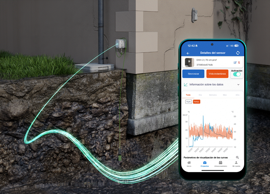 Por ejemplo, el DELTA L+ mini, un sensor de fisuras ultra compacto, es capaz de detectar cambios del orden de la décima de milímetro. Fácil de instalar, transmite sus datos por una app móvil que envía alertas automáticas al superar un umbral crítico. Acoplado al DELTA X-H, que mide la humedad del suelo, permite anticipar los efectos del movimiento de suelos expansivos y relacionar este fenómeno con la evolución de las grietas.